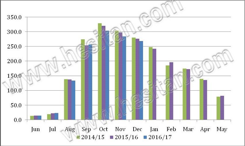 2016/17產季新西蘭6-12牛奶產量下降3% 12月份新西蘭牛奶產量268.9萬噸,同比去年下降2.75%,該產季截止到12月份同比下降2.9%。2016年全年新西蘭牛奶...