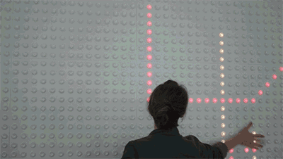 Chapter1 波動(dòng)墻裝置 其實(shí)在我們的生活中,已經(jīng)出現(xiàn)了很多有趣的公共設(shè)施設(shè)計(jì),比如這種人機(jī)互動(dòng)可以實(shí)時(shí)呈現(xiàn)的。 將200多個(gè)燈泡垂直懸掛,在交替亮燈的...