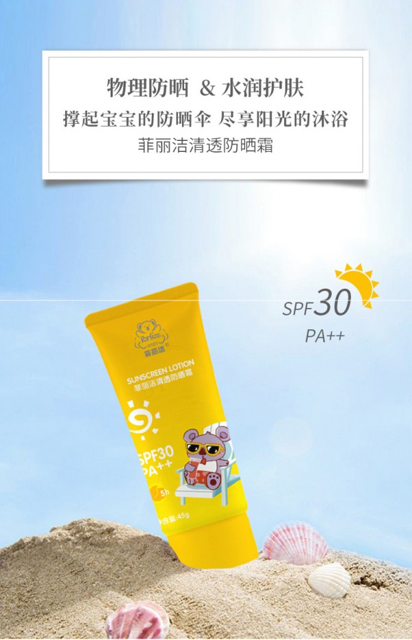你知道嗎?長時間日曬對寶寶肌膚的損害非常大,水分流失、發(fā)紅干燥、發(fā)癢刺痛、曬黑曬傷。菲麗潔兒童清透物理防曬霜物理防曬&水潤護膚,撐起寶寶的防曬傘盡享陽光的沐浴。菲麗潔兒童清透物理防...