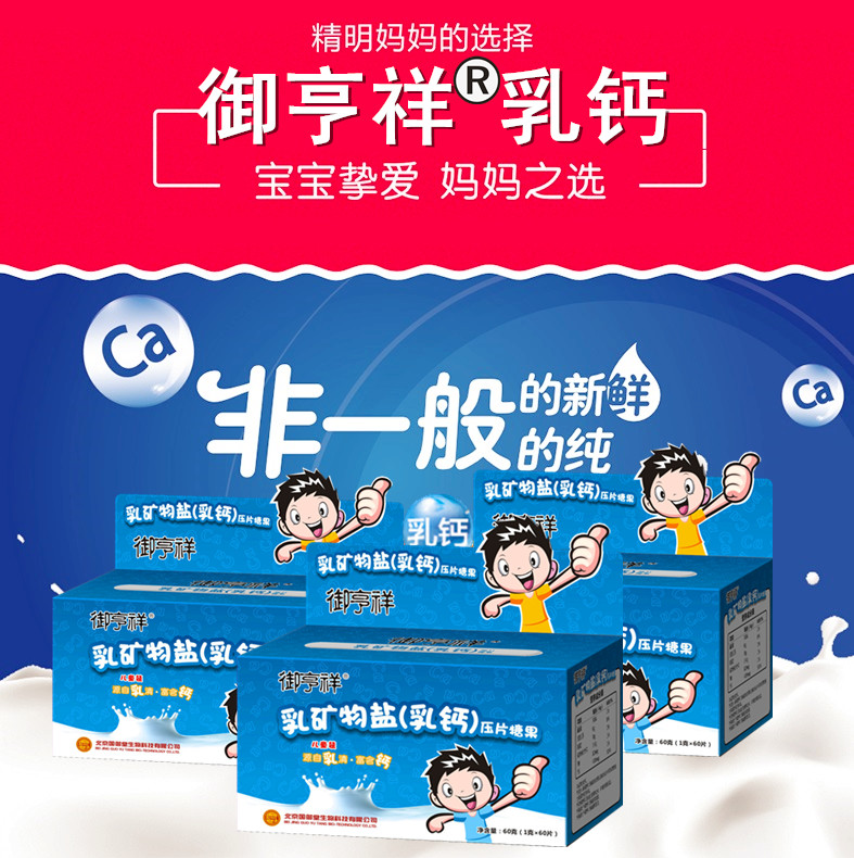 【產品原料】新西蘭乳鈣粉,乳礦物鹽,乳粉,淀粉,檸檬酸,硬脂酸鎂 【食用方法】每日1次,每次1-2片;咀嚼食用。 【產品規格】1.0g×60片/盒 每件200盒 【保質期】24個月 【貯藏方法】密封,置陰涼、通風、干燥處 【產品特點】 吸收好,不傷腸胃:乳鈣中含有豐富的乳糖和蛋白質,所以鈣的吸收率高,且溶解度好,不傷腸胃。 鈣源好,天然純正:乳鈣是以新鮮乳清為原料,濃縮優質鮮奶,全新的天然有機鈣源,是膳食活性鈣最佳來源。 口感好,奶香味道:乳鈣濃縮天然奶香,更好吃。 大品牌,媽媽放心:國御堂出品,更有保障。 御亨祥乳礦物鹽鈣誠招各區域獨家代理商