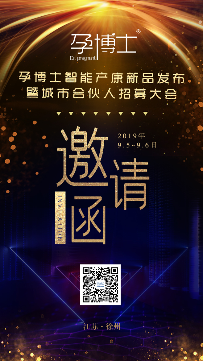 孕博士智能產康新品發布暨城市合伙人招募大會——顛覆傳統,門店轉型,我們為改變而來! 2019年9月5~6日在徐州卡迪亞國際大酒店舉行