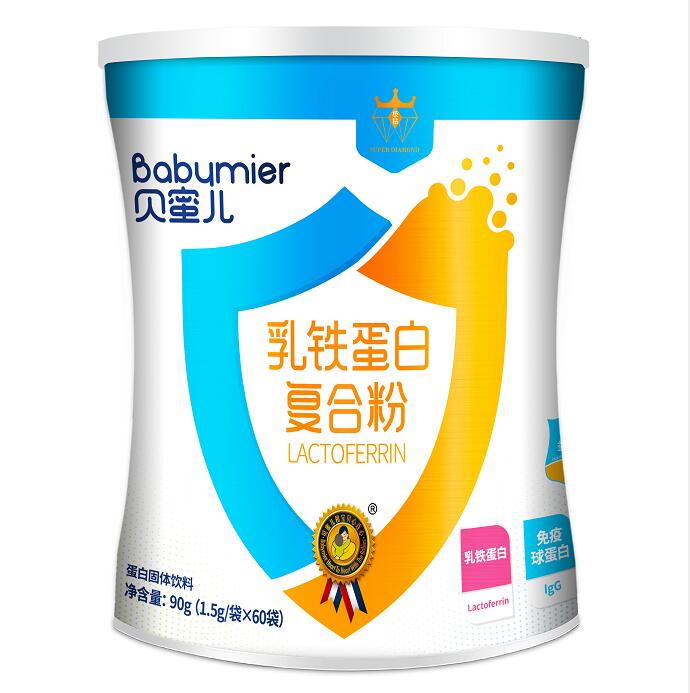 貝蜜兒乳鐵蛋白系列,精選美國進口乳清蛋白粉,同時添加乳鐵蛋白、免疫球蛋白IgG 、多肽蛋白、鈣鐵鋅、維生素、益生元等營養成分,搭配合理,營養素全面均衡,易消化易吸收。多營養配比,為成長提供能量,以及必需營養素。小袋獨立包裝,科學劑量,服用方便。