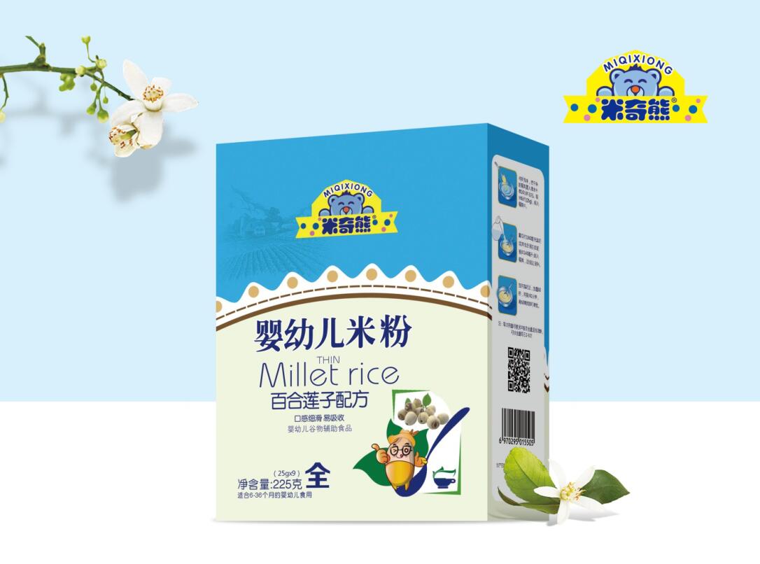 米奇熊米粉以天然優質食材為原料,對生產環境、生產工藝要求更嚴格,口感好、有機成份含量高、營養、安全,有百合蓮子配方、淮山薏米配方、紅棗核桃配方、鐵鋅鈣配方四種不同配方單品,富含豐富的營養物質,全面助力健康成長每一天!