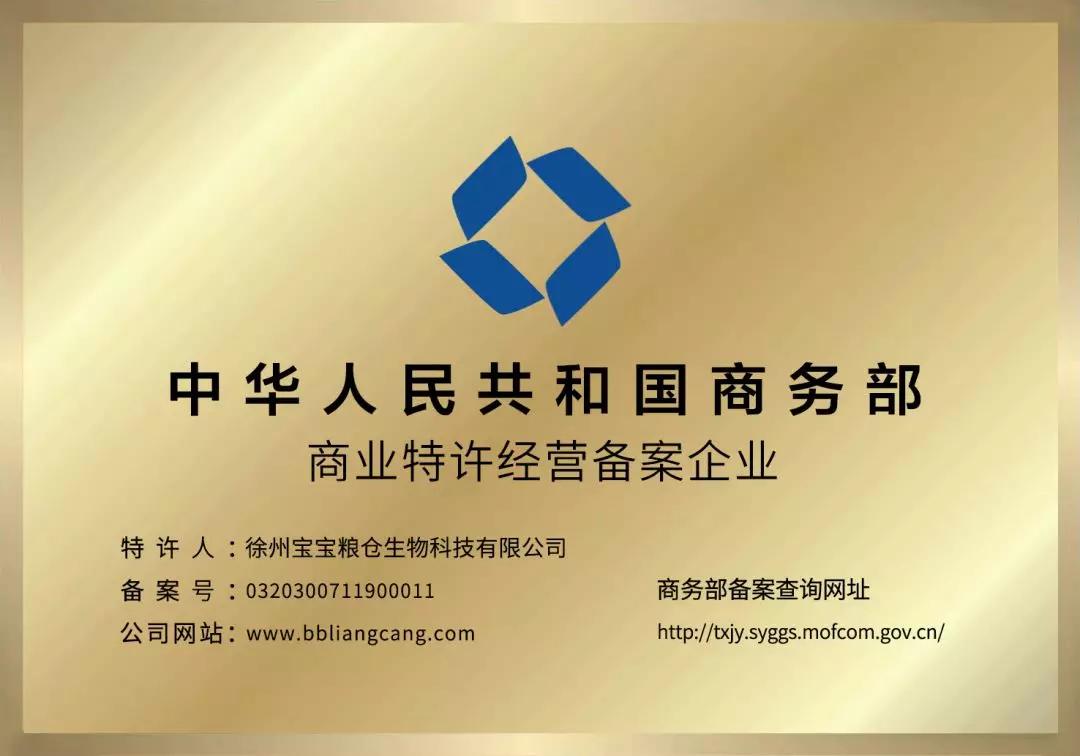 | 熱烈祝賀!寶寶糧倉集團全品牌獲國家商務部特許經營備案企業 |