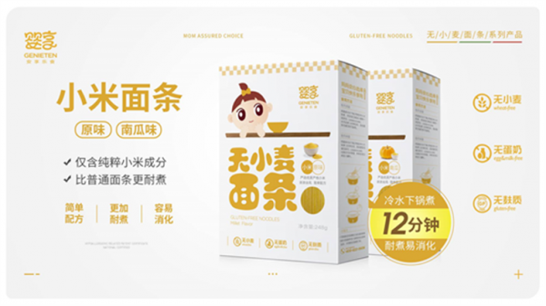 嬰享源自荷蘭傳統品牌Genieten,利用荷蘭Eindhoven傳統嬰童輔食生產的配方、工藝與營養添加技術,結合東方寶寶腸胃特點與食材結構,優選東北山區優質小米、水稻、玉米為原料,為寶寶提供優質的餅干、面條等食品。品牌擁有多項專利技術,專注為中國過敏寶寶提供無麩質、無蛋奶類的產品和服務。 嬰享旗下擁有無小輔食、無小麥零食、敏寶營養輔助等系列產品。目前嬰享已經成為全球領先的專業低敏輔食品牌,為全球敏寶提供營養全面,安心放心的健康產品。 展會亮點—產品展示 嬰享小米面條