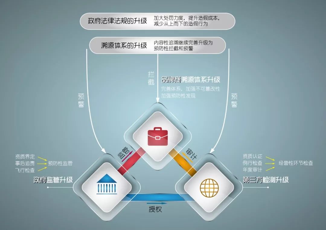 我們要明確的是,當前市面上的溯源體系只能在一定程度上進行信息攔截和預防,無法做到攔截所有的人為操作。因此,更需求政府以及第三方機構的介入共同配合,將事后問責性溯源體系上升為預防性追溯體系。