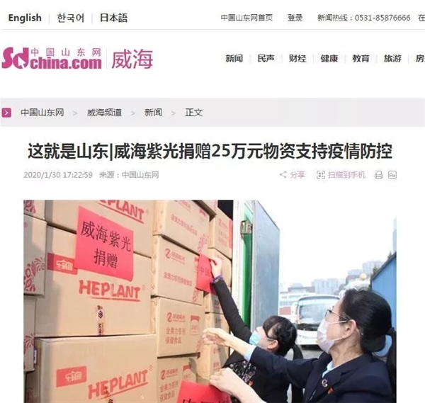 威海紫光將繼續密切關注疫情,積極調動資源,以高度的責任感和強烈的愛國情懷加入到這場疫情阻擊戰中來,同時呼吁社會更多的愛心人士和企業參與進來,為抗擊疫情貢獻力量!