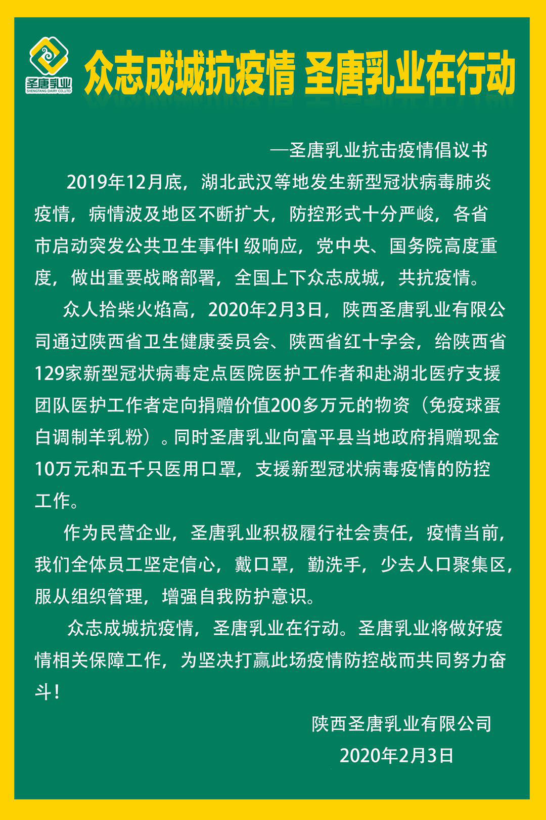 | 眾志成城抗疫情圣唐乳業(yè)在行動 |
