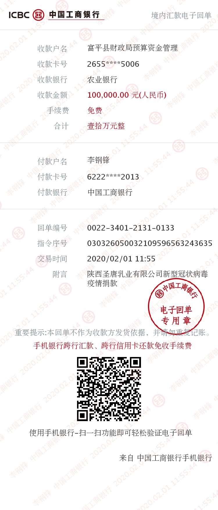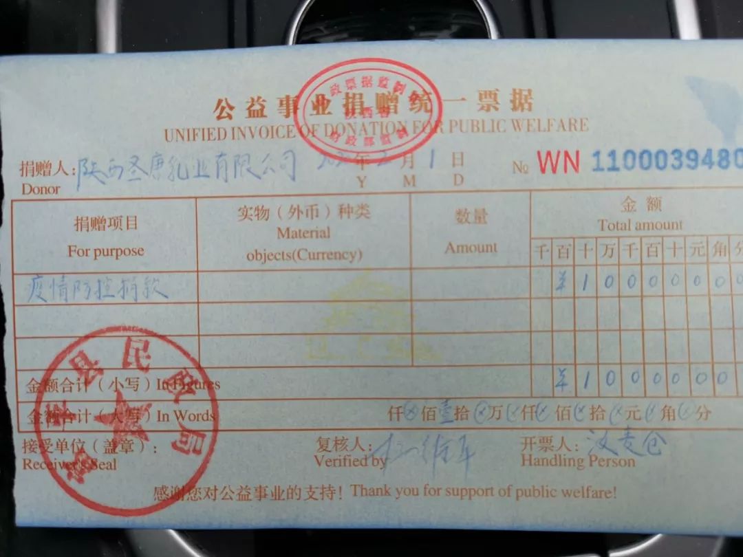 2月3日,在公司董事長徐長城、總裁武壯田的安排下,常務(wù)副總經(jīng)理李鋼鋒通過和陜西省衛(wèi)生健康委員會及陜西省紅十字會聯(lián)系溝通,捐贈價值200多萬元物資(免疫球蛋白羊乳粉),定向捐贈給陜西129家新型冠狀病毒定點醫(yī)院醫(yī)護工作者和赴湖北醫(yī)療支援團隊醫(yī)護工作者。