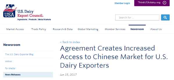 | 中國乳制品市場早讓美國公司垂涎三尺于是有了這份諒解備忘錄 |