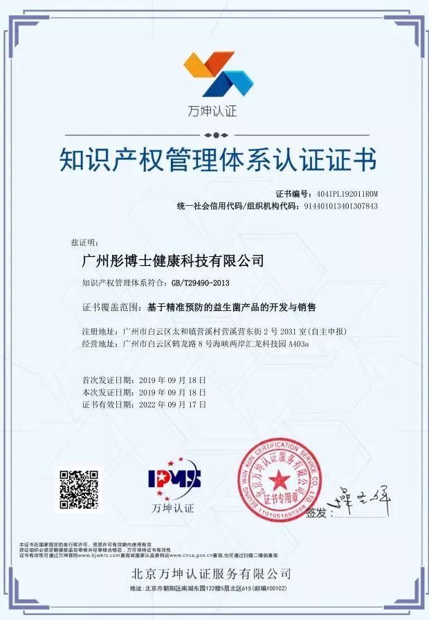 彤博士健康產業,一直致力于功能性益生菌的研發與銷售,公司2019年9月18日通過了《基于精準預防的益生菌產品的開發與銷售》知識產權管理系統認證,意味著彤博士從自主生產開始,對益生菌產品全體系、全方位的布局已經開始全面進入落實階段。以精準預防為方向,為消費者提供更符合其需求益生菌產品。 |