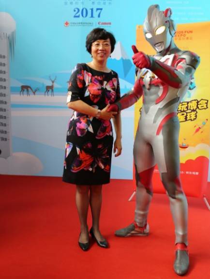 ▲中玩協梁會長與奧特曼親密合影▲ 奧特曼:切,你們知道啥! 和領導握手我武力值up up up!