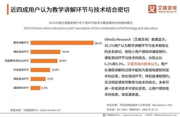 隨著大量學習需求涌入線上平臺,用戶規模短期內激增,在線教育行業將迎來重大發展。而傳統線下教育機構在此次突發性公共衛生事件的影響下,正面臨著線下全面停課的巨大沖擊。同時,傳統教育機構不得不以線上課程轉型的方式來應對此次疫情帶來的影響,但其由于缺乏經驗和技術,面臨挑戰較大,尤其是中小企業,或較難度過疫情寒冬。 用戶需求趨于嚴苛,在線教育開啟精細化運營時代 線上課程突破時空限制,節省時間和金錢成本。跟誰學、猿輔導等機構的大班課模式覆蓋人群數量可觀,但存在體驗性、互動性較弱的問題;掌門教育等機構的1對1模式能夠提供個性化教學和接近于線下的互動感,但對網絡并發的穩定性要求高。 隨著認知的增強,如今的在線教育用戶對產品的要求正在逐漸變得嚴苛,在線教育企業應該強化自身精細化運營策略,以用戶需求為核心,注重全面提升自身實力,保證課程質量,優化用戶體驗。 iiMediaResearch(艾媒咨詢)數據顯示,43.4%的受訪用戶認為在線教育平臺的優勢在于共享課程資源,教學資源豐富;但同時,用戶對師資質量、課程質量依舊存在顧慮,偏好選擇知名的在線教育品牌。艾媒咨詢分析師認為,在線教育平臺具有海量教學資源,能滿足用戶的多元需求,但在提供海量教育資源的同時,更應嚴格把控教師質量、提高課程質量、完善用戶保障體系。