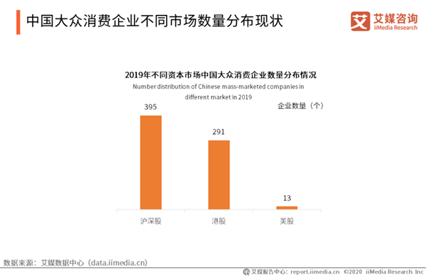 中國(guó)大眾消費(fèi)企業(yè)不同市場(chǎng)數(shù)量分布現(xiàn)狀 數(shù)據(jù)顯示,中國(guó)大眾消費(fèi)企業(yè)偏好在滬深股上市,截至2019年12月31日,滬深股市場(chǎng)的大眾消費(fèi)企業(yè)達(dá)395家。艾媒咨詢分析師認(rèn)為,目前滬深股市場(chǎng)仍然是大眾消費(fèi)企業(yè)主要上市渠道,但滬深股市場(chǎng)上市資質(zhì)要求更為嚴(yán)格,未來選擇在境外資本市場(chǎng)上市的企業(yè)有望繼續(xù)增加。