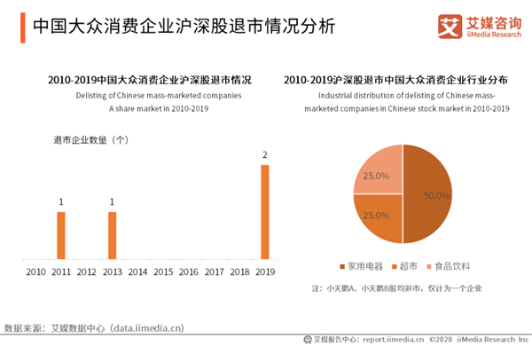 中國(guó)大眾消費(fèi)企業(yè)滬深股退市情況分析 數(shù)據(jù)顯示, 2010-2019年間,在滬深股有4家中國(guó)大眾消費(fèi)企業(yè)退市。其中,2019年退市企業(yè)2家,退市的企業(yè)以家用電器企業(yè)為主。艾媒咨詢分析師認(rèn)為,在新型智能家電產(chǎn)品以及家電零售模式的沖擊下,傳統(tǒng)家用電器企業(yè)迎來挑戰(zhàn),發(fā)展愈加嚴(yán)峻,技術(shù)及運(yùn)營(yíng)模式轉(zhuǎn)型升級(jí)迫在眉睫。