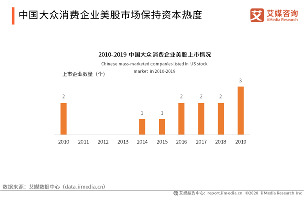 中國(guó)大眾消費(fèi)企業(yè)美股市場(chǎng)保持資本熱度 數(shù)據(jù)顯示, 2010-2019年以來在美股上市的中國(guó)大眾消費(fèi)企業(yè)并不多,僅有13家企業(yè);近幾年,中國(guó)大眾消費(fèi)企業(yè)選擇在美股上市的熱情有所回升。艾媒咨詢分析師認(rèn)為,對(duì)于瑞幸咖啡等新興企業(yè),選擇在美股上市有利于較為迅速地獲得融資,實(shí)現(xiàn)快速發(fā)展。大眾消費(fèi)企業(yè)在美股上市整體呈現(xiàn)出上升趨勢(shì),未來預(yù)計(jì)會(huì)有更多企業(yè)選擇在美股上市。