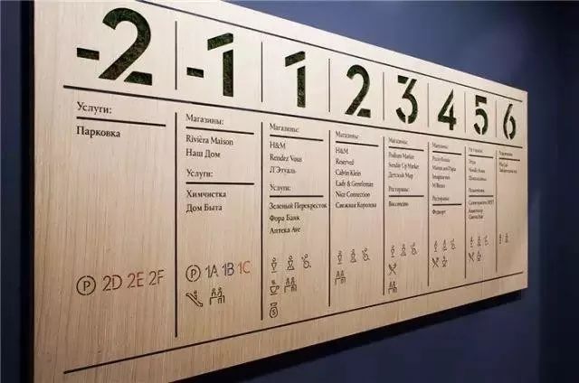 以家庭為中心,使用俏皮的動物圖案作為環境圖形,打造了有趣的、充滿活力的導視系統。 2、產品定位 一套完整的導視系統涉及到色彩、圖形、字體、版式、牌子的高度、形狀公益以及科學的設置等諸多要素,但是設計要素的應用基礎是所在商場的商業定位。商場導視系統設計的形式和商場的商業定位是密不可分的。 優秀案例: 舒適風格:Repossitioning購物中心 為了滿足更苛刻的顧客,指示系統必須是現代的和復雜的。該購物中心使用木材和苔蘚,嘗試帶來巴西森林氛圍的空間,使室內舒適自然。