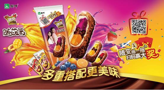 伴隨著人們生活水平的普遍提高以及中國市場與國際市場逐步接軌,大眾的消費模式迎來全面升級。吃冰淇淋不再只是為了解暑,更是一種生活中的休閑和享受。 2016年,蒙牛推出首款7層級雪糕、隨變隨芯果憑借雙重果醬的獨特賣點,配合“隨變搖一搖,掃碼贏大獎”的互動活動,讓消費者在大獎和美味的雙重享受中度過整個夏天。活動參與量突破千萬,最多當日參與量達到30萬+,活動有效兌獎70萬次。#隨變聊:奇妙冷CP#先后兩次登上微博話題榜前十。