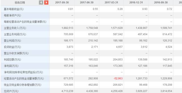 伊利今年第三季度的業(yè)績很好的延續(xù)了其今年上半年的增長勢頭。本季度其營收約188億元,凈利潤15.7億。營業(yè)總收入同比增長率18%,凈利潤同比增長率33%。 上半年,伊利安慕希增速在30%以上,金典增長20%左右,奶粉業(yè)務(wù)增速超20%。今年高端產(chǎn)品銷售額占比超過總營收的50%。奶粉新政后,伊利未來三年新景氣周期已經(jīng)開啟,行業(yè)份額持續(xù)加速,此輪乳業(yè)復(fù)蘇的重要支撐動力來自于三四線市場,伊利當(dāng)前渠道已大面積滲透至鄉(xiāng)鎮(zhèn)一級,繼續(xù)保持領(lǐng)先。 貝因美 貝因美第三季度營收約7億元,凈利潤約-1500萬。營業(yè)總收入同比增長率53.83%,凈利潤同比增長率92.24%。