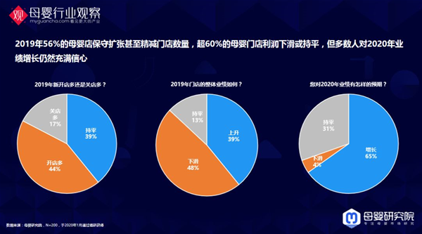 這一年,線下的渠道在加速關店還是開店? 母嬰研究院近期的調研報告顯示,2019年56%的母嬰店保守擴張甚至精減門店數量,超60%的母嬰門店利潤下滑或持平,但多數人對2020年業績增長仍然充滿信心。