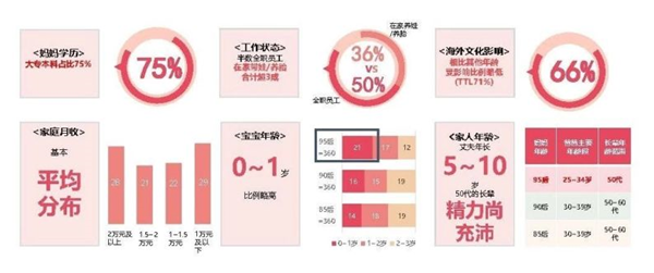 95后媽媽畫像:寶寶更年幼、丈夫更年輕、長輩精力充沛 對年輕人敏銳,就是對新市場的敬畏。當(dāng)95后這一群人組成新家庭,初為父母,他們無論是育兒生活還是消費(fèi)特點(diǎn)都與85/90后有了很大差別。 追求自我、舒適第一是他們的特點(diǎn),因此95后媽媽傾向于主動(dòng)早生。88%的95后媽媽有計(jì)劃地主動(dòng)早生,因?yàn)榛謴?fù)快、有人幫忙、更輕松。有95后媽媽表示“早生有利于身體恢復(fù)”,因?yàn)?5歲以后生育難瘦下來;有媽媽希望縮小與寶寶的年齡代溝,還有的媽媽覺得趁著長輩年輕,早生可以讓父母幫忙帶孩子。