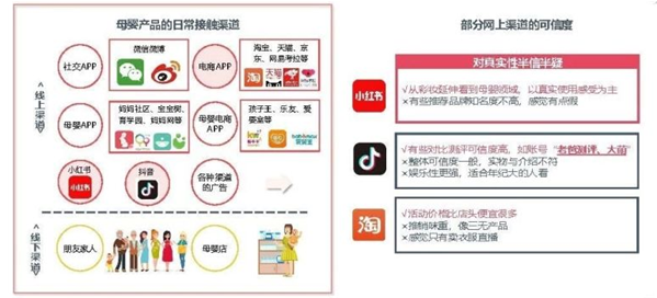 95后媽媽獲取育兒理念的渠道比85后、90后媽媽更加廣泛,且大多為日常碎片化的補(bǔ)充。他們?nèi)粘=佑|到母嬰產(chǎn)品的渠道除了親朋好友的推薦和母嬰店外,線上渠道更為廣泛。常見的社交APP、電商平臺(tái)、母嬰APP、母嬰垂直電商、社交電商等多平臺(tái)多渠道接觸。