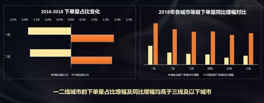 從全國各地中國品牌消費情況來看: -2018年中國品牌下單量占比更高的地區:貴州、湖南、河南、西藏、江西; -2016年-2018年中國品牌下單量占比提升快的地區:天津、北京、吉林、上海、遼寧; -2016年-2018年中國品牌人均消費金額增幅快的地區:云南、貴州、湖南、江西、湖北。 顯然在中國品牌占比相對更高的地區,如貴州、湖南、江西等地區,中國品牌商品在已經達到了很高的存量水平的情況下,用戶購買數量成長受到一定的限制,但這些地區的人均消費金額提升幅度較大,擁有著較高的高品質消費潛力,品牌商也可以在這些地區持續投入更多的高品質商品。 新人群:消費擴容潛力的核心 “年輕人”、“小鎮用戶” 隨著18-25歲的年輕人群體的購買力逐漸被釋放,開始展現出巨大的消費潛力,成為消費新增長點的主力人群。 報告顯示,2018年小鎮青年中國品牌的下單金額同比增幅達到79%,下單量同比增幅達到67%;2018年都市青年中國品牌的下單金額同比增幅達到63%,下單量同比增幅達到54%。 無論是中國品牌還是國際品牌、無論是都市人群還是小鎮城市人群,年輕人群的消費增幅趨勢較其他年齡段更加明顯,其中小鎮青年的消費潛力較都市青年更高。