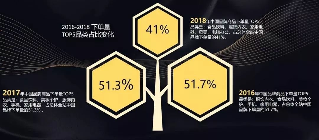 同時對TOP500中國品牌中增幅TOP100的品牌進行分析,2018年同比增幅TOP100的品牌下單金額整體增幅超過220%,下單量增幅超過90%。 從數據上看,在具有一定銷售規模的前提下,有很多的中國品牌依然得到了高速成長,中國品牌的消費潛力很大。同時增幅TOP100中國品牌的商品數量增幅也較高,2018年的同比增幅超過330%,這些高速成長的中國品牌也在不斷創新,深挖和細分中國市場,推出更多優質的商品和服務,以滿足消費者更加多元化、個性化的需求。 新觀念:品牌品質體驗 贏得消費者 隨著中國品牌商品的轉型升級,國民消費觀念轉變,消費者對于國品的認知及購買品類的范圍越來越廣泛。 從數據上來看,頭部品類排名變化不大,但品類的集中度下降趨勢較為明顯,同時在國際品牌更占優勢的母嬰等品類中,中國品牌商品的下單量上升趨勢也十分明顯,消費者對國品品質的信任度正在提升。 中國品牌消費中,食品飲料的占比較大,越來越多的消費者將線下商超的消費習慣帶到了線上商超,生鮮、個人護理、醫藥保健等品類也都形成了快速增長,甚至在母嬰品類也有此表現,京東平臺的一站式購物特色全面滿足消費者的多元需求。