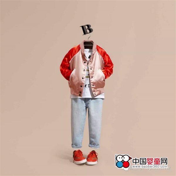 女童 Burberry Burberry女童系列相比男童系列則多了經典的burberry經典格子裙裝,簡約而大方,非常耐看時尚。在色彩上,女童夾克外套更講究艷麗可人,不缺個性和張揚! 刺繡字母圖案緞面飛行夾克