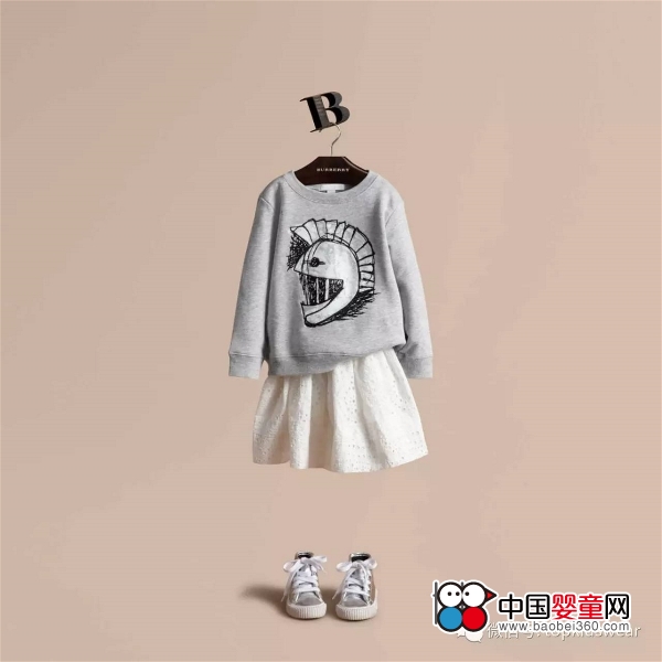 本季burberry童裝還以希臘神話中的的智慧女神帕拉斯·雅典娜為靈感來源,將帕拉斯頭像設計到新款童裝中,讓burberry新款童裝多了一絲復古典雅的神話色彩。 帕拉斯頭像圖案棉質襯衫