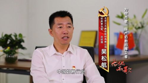 改革開放四十年間,無數共產黨員在各自的工作崗位上兢兢業業,用奉獻詮釋著國家的脊梁。為了展現他們的思想和風采,北京市委組織部、市委宣傳部和北京廣播電視臺在各行各業選擇了20名優秀共產黨員的事跡,聯合制作了大型電視系列片《為你而歌》,號召全體黨員學習。 在2016年作為建黨95周年獻禮片而錄制的第十四部《為你而歌》中,北京三元奶粉事業部總經理吳松航以“國產奶粉捍衛者”的身份,向我們“講述”了一位國產奶粉從業者的責任堅守與使命擔當。作為食品行業的唯一代表,吳松航的事跡,更像是一曲國產奶粉振興的贊歌。