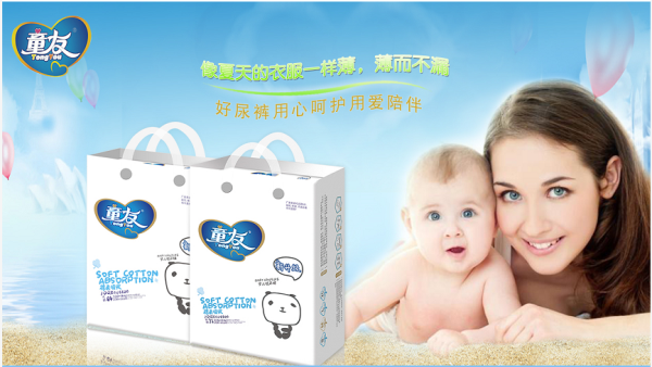 童友 紙尿褲是廣州愛茵母嬰用品有限公司生產的一款回頭率達95.73%的紙尿褲。敢在每包包裝袋右上方打上“可以免費試用五片包退包換”的售后服務,源于材料選用雙熱風材料(熱打孔面層、熱風底膜),并采用雙進口核心吸水因子,穩定性達99%。