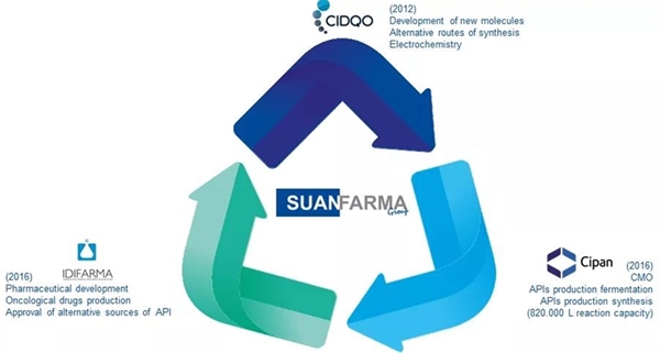 集團在藥物研究領域一直走在世界前沿。2012年,集團創立CIDQO,由7名博士專家領銜,專門研發新分子、合成替代源以及電化學相關研究。2016年,集團先后收購了IDIFARMA和Cipan,進行藥物研發、腫瘤藥物生產,以及發酵工藝生產API、合成工藝生產API等技術研究。
