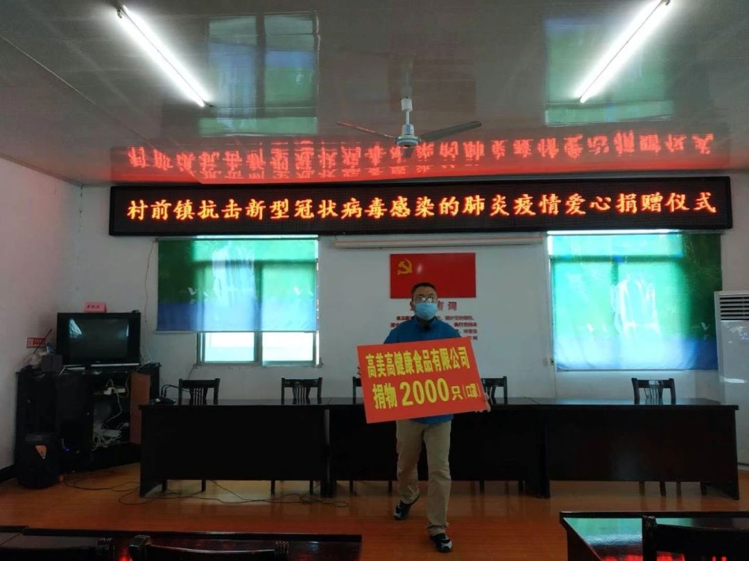 短短幾天工夫,藥食同源益生菌/藥食同源肽系列產(chǎn)品生產(chǎn)出來,連同口罩、消毒液等飽含高美高人深情厚誼的總價值約200多萬元相關(guān)物品捐贈出來,助力抗擊新冠肺炎疫情。 這次捐贈的產(chǎn)品是由高美高集團(tuán)聯(lián)合江西中醫(yī)藥大學(xué)聯(lián)合開發(fā)據(jù)科學(xué)文獻(xiàn),活性肽具有多種人體代謝和生理調(diào)節(jié)功能,易消化吸收,有促進(jìn)免疫、激素調(diào)節(jié)、抗菌、抗病毒脂等作用,能夠很好的提高免疫力為抗擊病毒助力。
