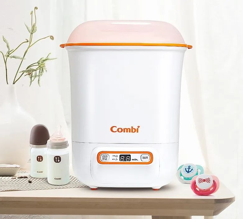 與此同時,該款產品還采用智能化技術升級吸奶器的吸力,模仿寶寶吸吮習慣,具備10檔變頻調節功能,并且還有記憶功能,每次打開后都會精準呈現上次吸乳的數據。其中,獨有的催乳+吸乳兩種模式,催乳時主要是利用淺力按摩進行泌乳,吸乳時利用不斷加深的力度,增加吸力、迅速引出乳汁,實現舒適快速的吸乳效果。 突破寶寶消毒產品單一化缺陷,智能烘干功能疊加 Combi康貝多功能嬰兒奶瓶消毒鍋一鍵按壓就可實現6分鐘快速消毒,滅殺寶寶易接觸到的大腸桿菌和金黃色葡萄酒菌。而定時10—45分鐘就可強力烘干,利用氣旋式渦流動力設計加熱空氣,采用熱風均勻烘干。定時51分鐘,就可實現消毒+烘干一體的功能疊加,突破以往寶寶消毒產品單一化的缺陷。