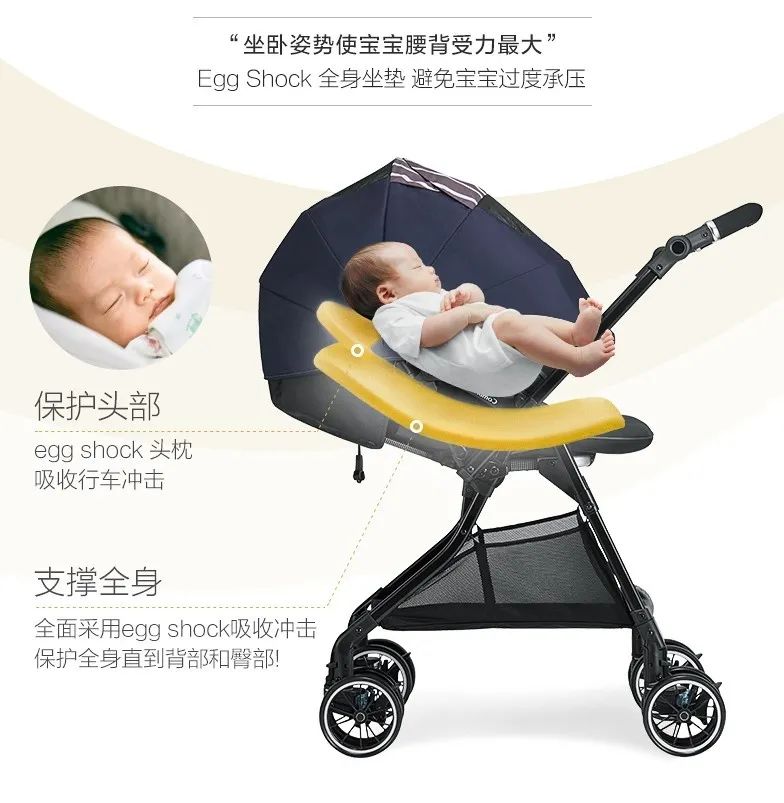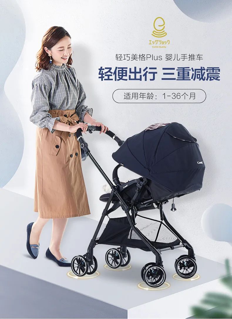 減輕寶寶頭部和脊椎壓力的特殊材質坐墊,升級推車安全性和功能性 Combi康貝升級了輕巧美格plus嬰兒推車,在以往康貝推車只在頭枕部使用強力沖擊吸收材質Egg Shock的基礎上,擴大到全車座墊均使用Egg Shock材質。Egg Shock材質做成的頭枕和座墊,在推車的過程中可以吸收各種行車沖擊,避免寶寶的頭部和腰部過度承壓,極大的保護寶寶較為脆弱的頭部、背部和脊部。