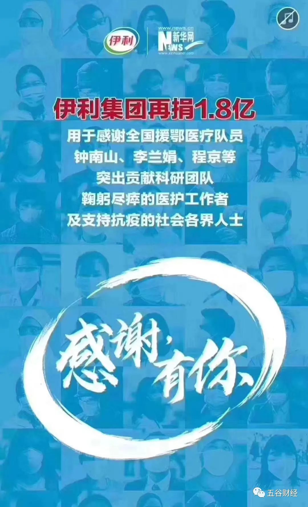 | 伊利再捐1.8億,獎勵全國所有援鄂醫(yī)療隊員全年營養(yǎng)支持,支持鐘南山、李蘭娟院士團(tuán)隊科研攻關(guān),因公殉職 |