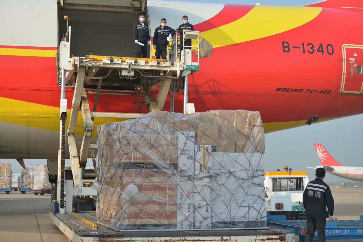 2020年4月8日,被按下“暫停鍵”76天的武漢重新出發(fā)。 上午9:30,海航集團旗下Y87447貨運包機航班滿載70余噸來自湖北仙桃、宜昌、武漢等地的口罩、防護服、護目鏡等防疫物資從中國武漢起飛馳援澳大利亞。