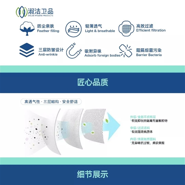 淑潔衛(wèi)品二十年專注衛(wèi)品護理,老品牌,可信賴。這次更是積極響應全民抗“疫”的號召,開發(fā)投產(chǎn)全新產(chǎn)品一次性口罩。 淑潔衛(wèi)品,為愛護航!
