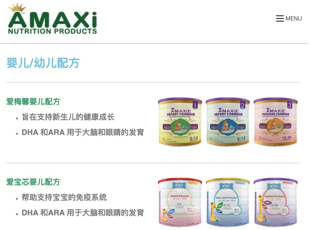 Amaxi Nutrition Products Inc(美國愛梅馨營養食品公司)位于美國加州的Rancho Cucamonga(庫卡莫格市)。 其官網資料獲悉,愛梅馨集團成立于2013年,旗下產品包括嬰幼兒童、青少年和老年人所食用的混合配方的營養品。所有的產品都在其生產和營運總部的美國加州生產,再通過全球的分銷商,經銷到世界各地。