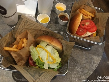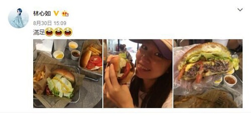 最近,林心如曬出自己與高熱量美食的合影---夾肉漢堡與薯?xiàng)l,這位準(zhǔn)媽媽還大呼:“滿足!”照片中的林心如帶著帽子遮面,但看起來精神飽滿,元?dú)馐悖荒樞腋!?/p>
