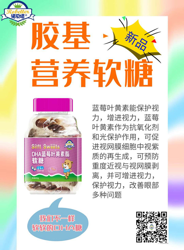 現有技術中的軟糖其糖分含量高,且容易形成齲齒,不符合人們對現代健康理念的追求為了解決上述現有技術中存在的技術缺陷,專業嬰童食品品牌——"諾貝塔”特發明提出了一種富含DHA的不致齲齒營養軟糖,它就是“諾貝塔膠基營養軟糖”!其中含有對人們健康有益的DHA,且該軟糖食用過多也不會造成齲齒問題哦,寶媽們可放心選擇!