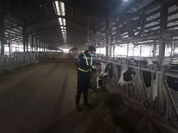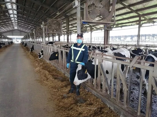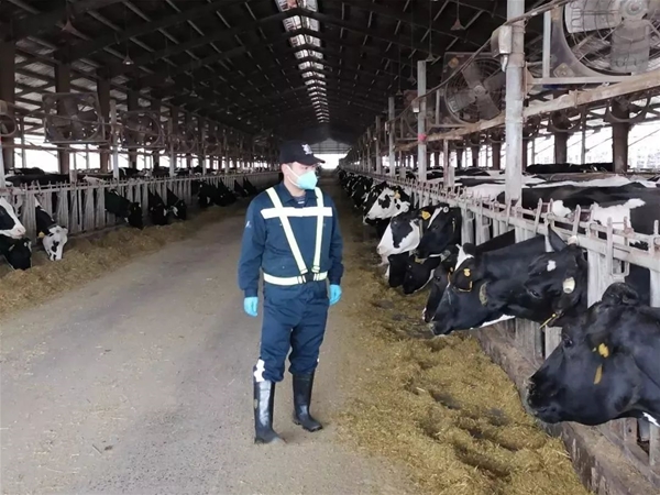 每日,他與繁殖團隊的同事們要對全場2900多頭成乳牛和后備牛進行5次巡查,實時關注牛只情況,產后牛只分泌物是否正常,牛床墊料是否充足舒適等問題,再對場內設備設施運行情況及時反饋。