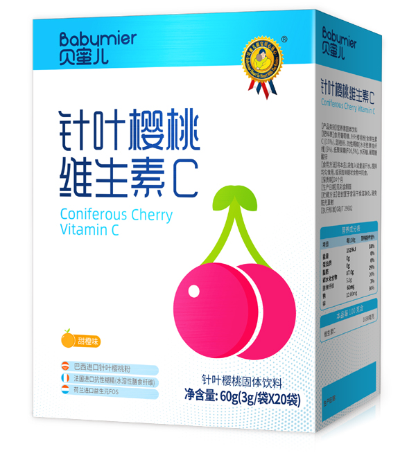 在人體所需的13種維生素里,VC需求量大且人體不能自行合成,需要從動植物中獲取。其中,植物性食物又提供了絕大部分的維C,針葉櫻桃就是維C含量比較突出的植物之一。像貝蜜兒針葉櫻桃維生素C固體飲料,選用巴西進口針葉櫻桃,復配益生元。
