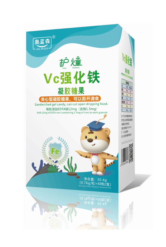 奧藍森護燑VC強化鐵凝膠糖果 夾心型凝膠糖果,可以剪開滴食 每粒添加EDTA鐵12mg(含鐵1.5mg)