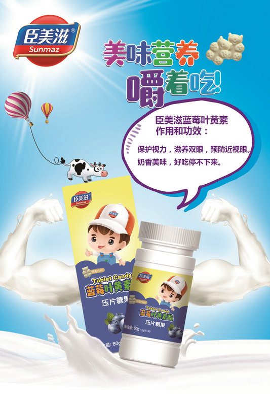 臣美滋藍莓葉黃素酯壓片糖果中富含豐富的葉黃素酯、藍莓、胡蘿卜素、DHA藻油、維生素C等成分,均衡營養,清新口感,每天嚼一嚼,可有效補充葉黃素,保護眼睛健康,守護視力健康。