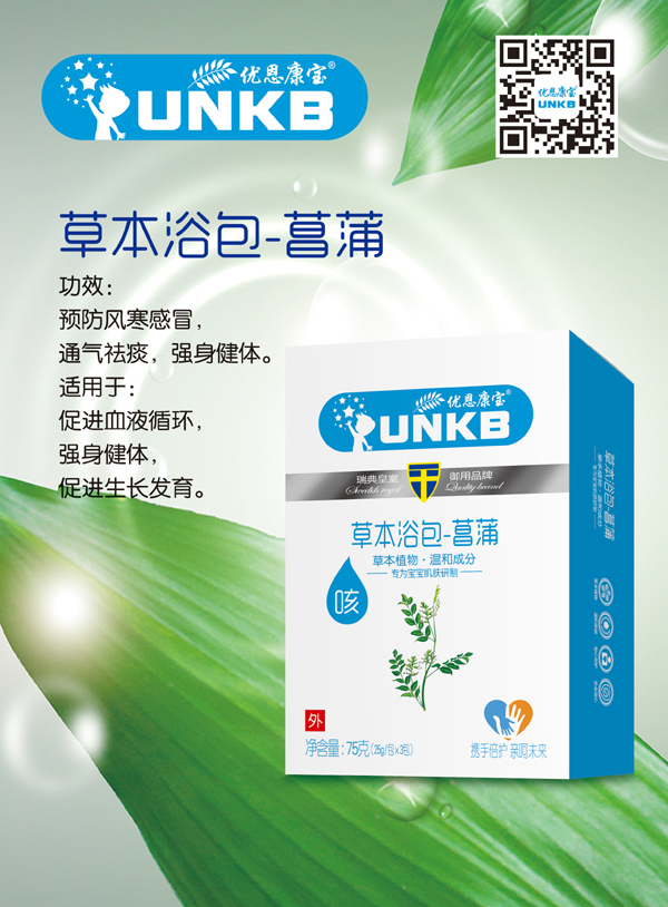 優恩康寶藥浴包系列產品,有菖蒲、金銀花、蘄艾、紫蘇四個配方,是以中醫理論為基礎,利用傳統中藥與現代高科技的完美結合,實現內病外治的物理法。用藥液熱作用人體肌膚,使之發汗,擴張毛孔,將深伏于體內的病邪從毛孔透出體外,幫助機體恢復正常,讓身體更健康。