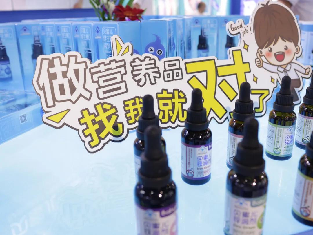 今年,貝蜜兒健康集團除了在現場展示了貝蜜兒益生菌、乳鐵蛋白、DHA、鈣鐵鋅等經典母嬰營養品,還展出了藍帽滴劑新品系列。