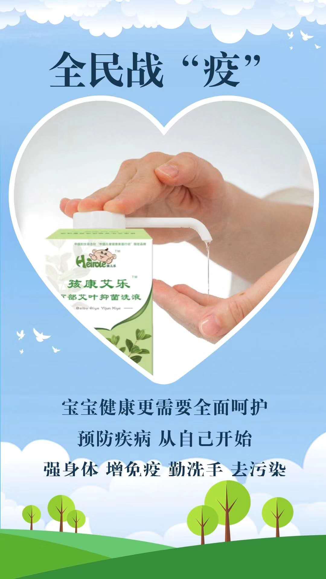 孩兒樂,全民戰(zhàn)“疫” 為愛(艾)行動(dòng) 有愛(艾)健康 孩康艾樂抑菌液 關(guān)愛你和家人的健康 國家配方專利值得信賴